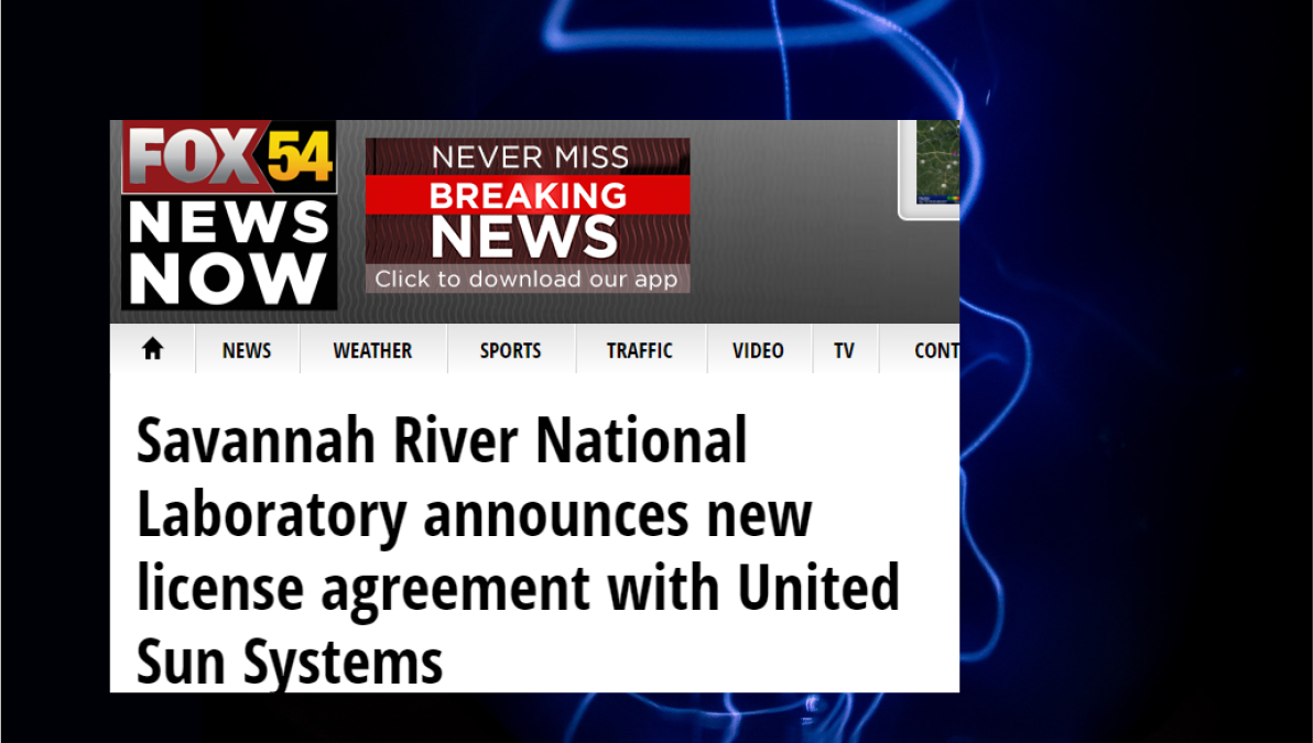 “By using our unique expertise, we have been able to develop an inexpensive way to store solar energy that makes this renewable energy source cost competitive with fossil fuels,” said Dr. Terry A. Michalske, Savannah River National Laboratory Director. “We are pleased to be partnering with United Sun Systems and to share our innovation with the solar industry.”